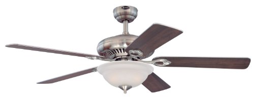Discount Westinghouse Lighting 7840000 Fairview Two-Light 52-Inch Reversible Five-Blade Indoor Ceiling Fan, Brushed Nickel with Frosted Glass Bowl
